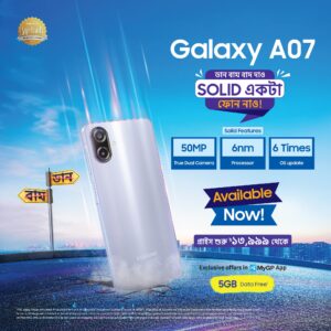 [ঢাকা, অক্টোবর 0৭, ২০২৫] দেশের বাজারে আনুষ্ঠানিকভাবে গ্যালাক্সি এ সিরিজের সর্বশেষ সংযোজন গ্যালাক্সি এ০৭ উন্মোচন করেছে স্যামসাং বাংলাদেশ। স্মার্টফোনের মিডরেঞ্জ সেগমেন্টে দীর্ঘস্থায়ী ফোন ব্যবহারে নতুন মানদণ্ড স্থাপন করবে ফ্ল্যাগশিপ ফিচার সমৃদ্ধ গ্যালাক্সি এ০৭।