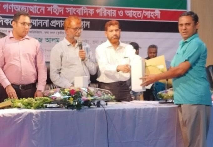 সুনামগঞ্জ প্রতিনিধি : চব্বিশ এর জুলাই গণঅভ্যুত্থানে সাহসী সাংবাদিকতার জন্য সম্মাননা প্রদান করেছে বাংলাদেশ সাংবাদিক কল্যাণ ট্রাস্ট। গত ১লা জুলাই থেকে ৫ আগস্ট ২০২৪ইং পর্যন্ত পেশাগত দায়িত্ব পালনে সাহসী ও ইতিবাচক ভূমিকা পালনের জন্য স্বীকৃতি ও সম্মাননা প্রদান করে সরকারী এ সংস্থাটি। এই লক্ষ্যে উক্ত গণঅভ্যুত্থানে যারা সাংবাদিক হিসেবে পেশাগত দায়িত্ব পালন করেছেন এবং সাহসিকতা,নিষ্ঠা ও পেশাদারিত্বের সঙ্গে সংবাদ পরিবেশনের মাধ্যমে জনগনের কাছে সত্য তথ্য তুলে ধরেছেন কেবলমাত্র সেসব সাংবাদিকদেরকেই এ সম্মাননা প্রদান করেছে সাংবাদিক কল্যাণ ট্রাস্ট।