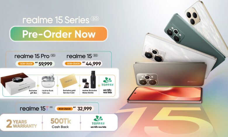 ক্রেতারা তাদের পছন্দের মডেল ১২-১৫ অক্টোবর পর্যন্ত প্রি-বুক করতে পারবেন। প্রি-অর্ডার করা ক্রেতাদের জন্য থাকছে এক্সক্লুসিভ গিফট বক্স, রিয়েলমি বাডস টি২০০ লাইট, এক্সক্লুসিভ গোল্ড সার্ভিস কার্ড, রিয়েলমি এক্সক্লুসিভ ওয়াটার বোতল ও কার্ড ছাড়াই ইজি টপপে ক্যাশ ইএমআই সুবিধা। প্রি-অর্ডারের এই অফারটি সীমিত সময়ের জন্য প্রযোজ্য এবং এক্ষেত্রে নির্ধারিত শর্তাবলী প্রযোজ্য হবে। বিশেষভাবে, প্রথম সেল পিরিয়ডে রিয়েলমি ১৫ প্রো ফাইভজি বা ১৫ ফাইভজি প্রি-অর্ডারের ক্রেতাদের জন্য এক্সক্লুসিভ গিফট বক্স থাকছে।