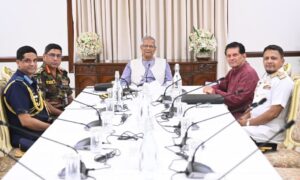 আজকের বৈঠকে আগামী ২১ নভেম্বর সশস্ত্র বাহিনী দিবসের আয়োজনে প্রধান উপদেষ্টাকে আমন্ত্রণ জানান তিন বাহিনীর প্রধান।