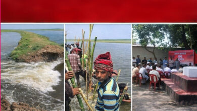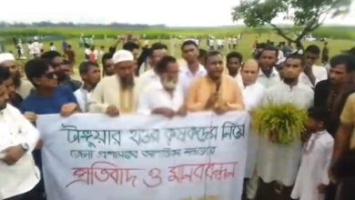 সুনামগঞ্জে বাঁধের নামে লুটপাটের প্রতিবাদে বিক্ষোভ সমাবেশ